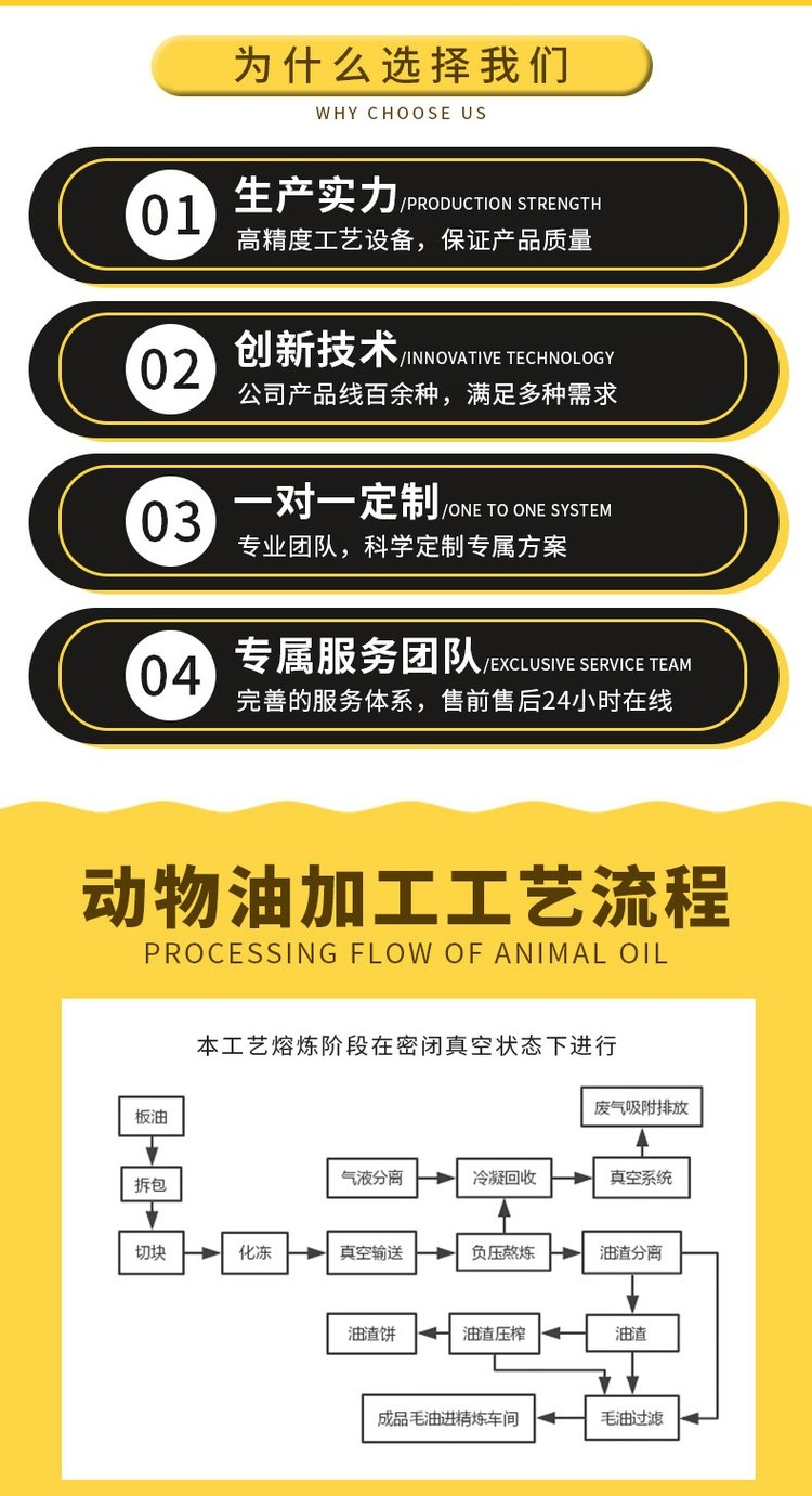 微负压熬炼锅:核心设备,采用真空或微负压工艺,使油脂在低温(减少氧化)下有效分离,避免异味外泄。